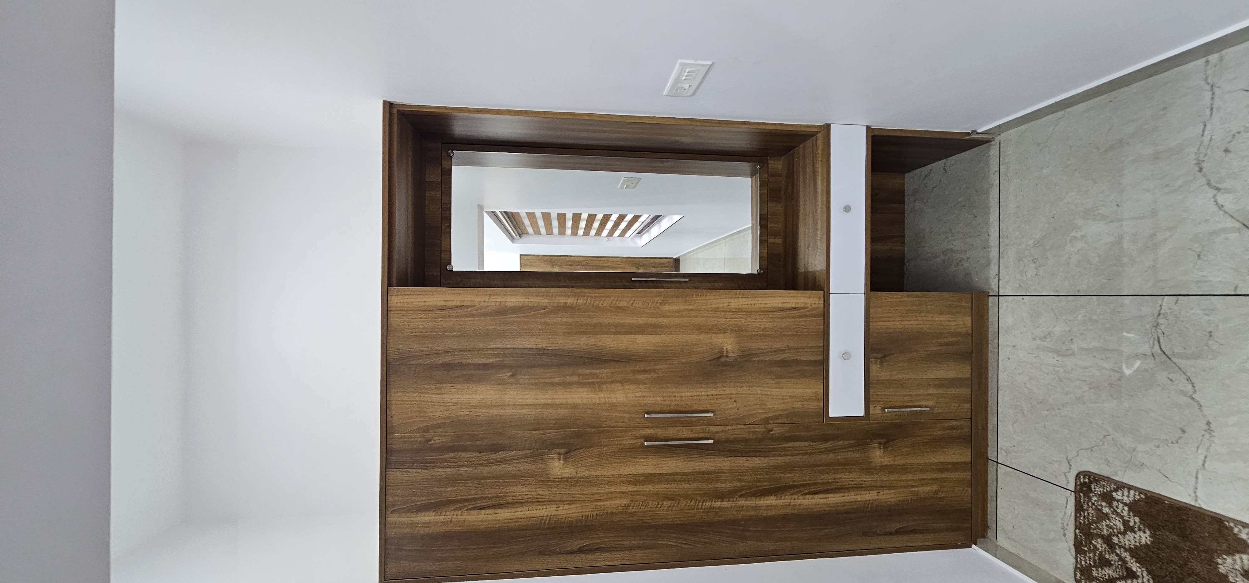 - Multiwood cabinetry with mica finish
